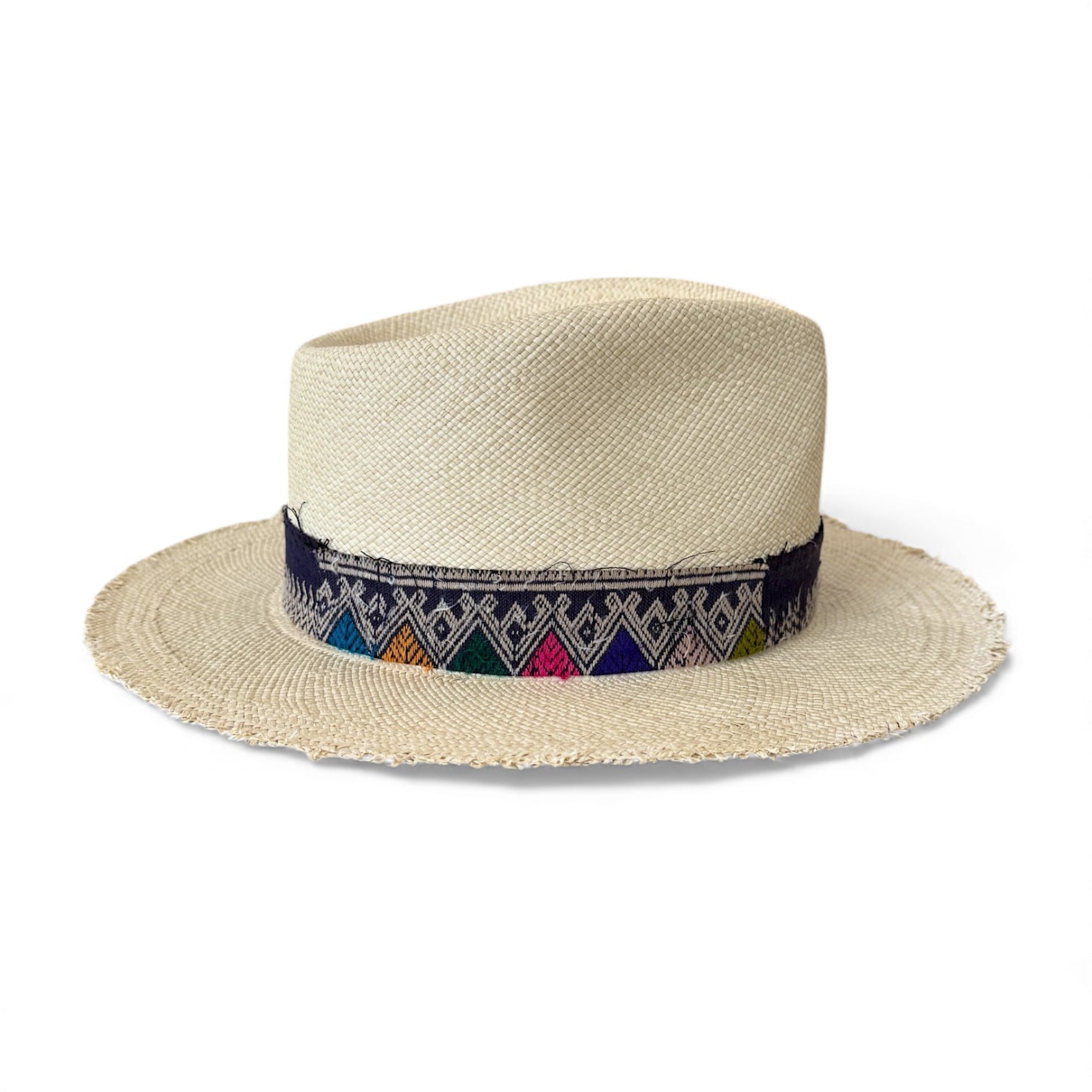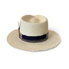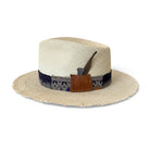 -Multi print band + leather pocket + Vintage pin & feather + Flange back brim