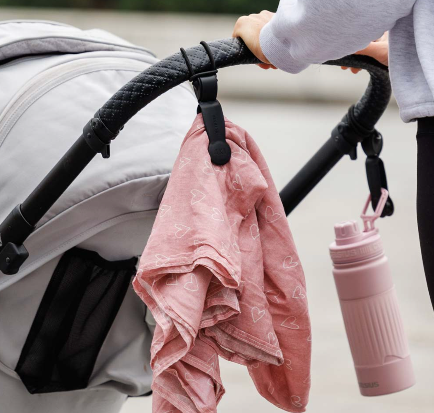 Lock it to your luggage handle to hold headphones or a travel pillow. Secure it to your backpack for a convenient water bottle carrier. Loop it round your pram handle to carry an extra dummy or toy.